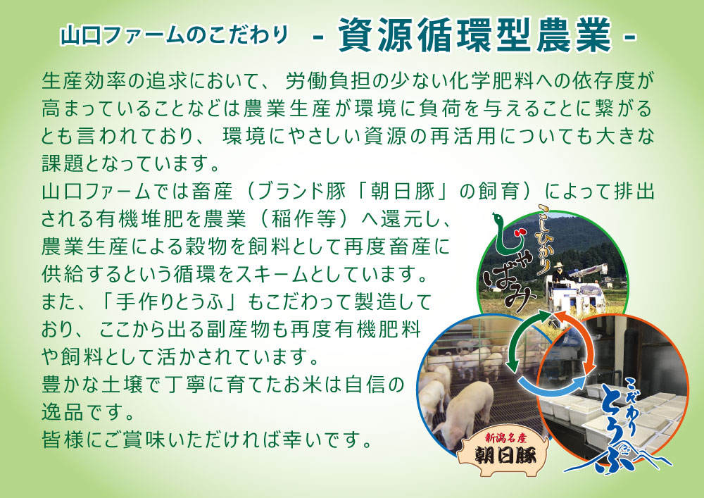 山口ファームはこれらの資源サイクルを活用し、資源循環型の事業に取り組んでいます。 ふるさとの原風景が美しく拡がる小さな村で、美味しいものを皆様にお届けしたいと努力を続けています。